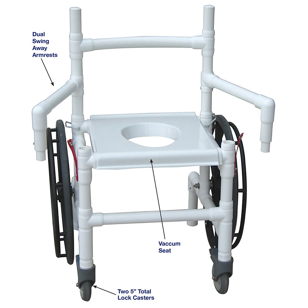 Healthcare Grade, Reinforced At All Stress Related Areas, De-Con Transferchair Dual Swing Away Arms For Easy Transfer, De-Con Transferchair Folds For Easy Storage, Mildew Resistant.