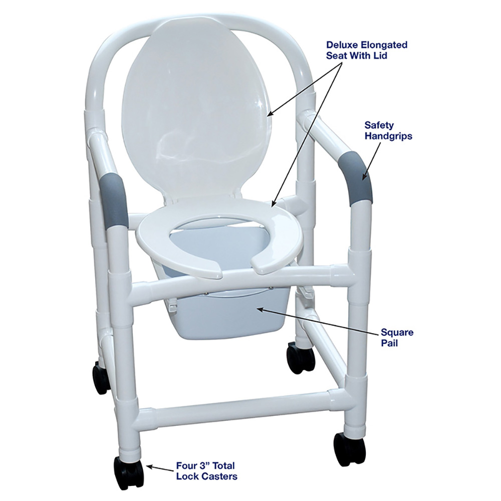 Healthcare Grade, Deluxe Elongated Seat With Lid Open Front, Square Pail, Anti-Slip Handgrips, Non-Slip Rubber Tips, Reinforced At All Stress Related Areas.