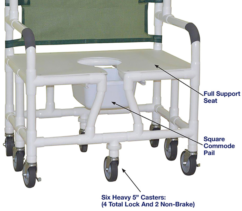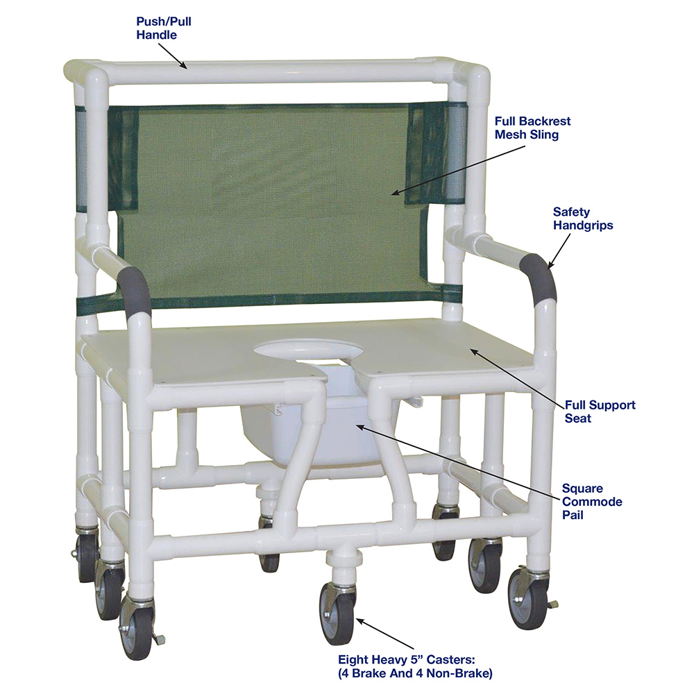 Healthcare Grade, Full Support Seat (High Density Polyethylene Flat Seat) Enhances Resident Comfort, Safety Handgrips And Fast Drying Mesh Back/Sling, Reinforced At All Stress Related Areas, User-Friendly Push Pull Handle, 10 QT Slide Out Commode Pail.