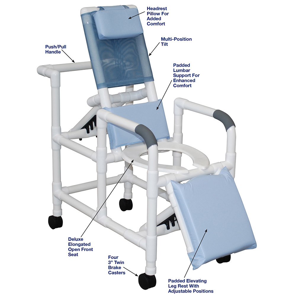 Healthcare Grade, Reinforced At All Stress Related Areas, Deluxe Elongated Open Front Commode Seat, Reclining Shower Chair, Ideal For Small Adults Or Pediatrics.