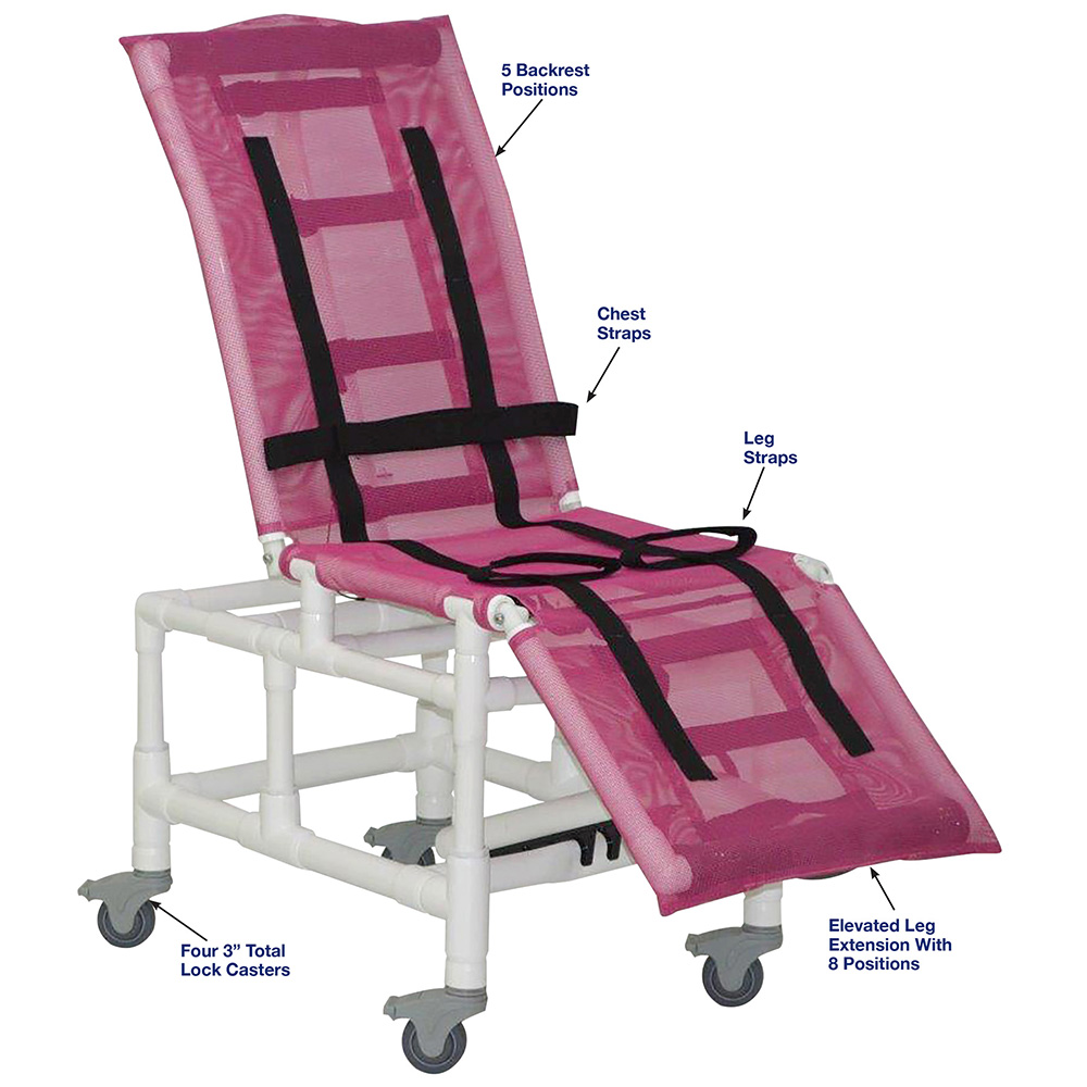 Healthcare Grade, Reinforced At All Stress Related Areas, Multi-Positioning Shower Chair, 5 Backrest Positions, Elevated Leg Extension With 8 Positions, Chest and Leg Straps Can Be Adjusted And Repositioned for Comfort And Security, Small Bath Chair Fits In Standard Size Bath Tubs.