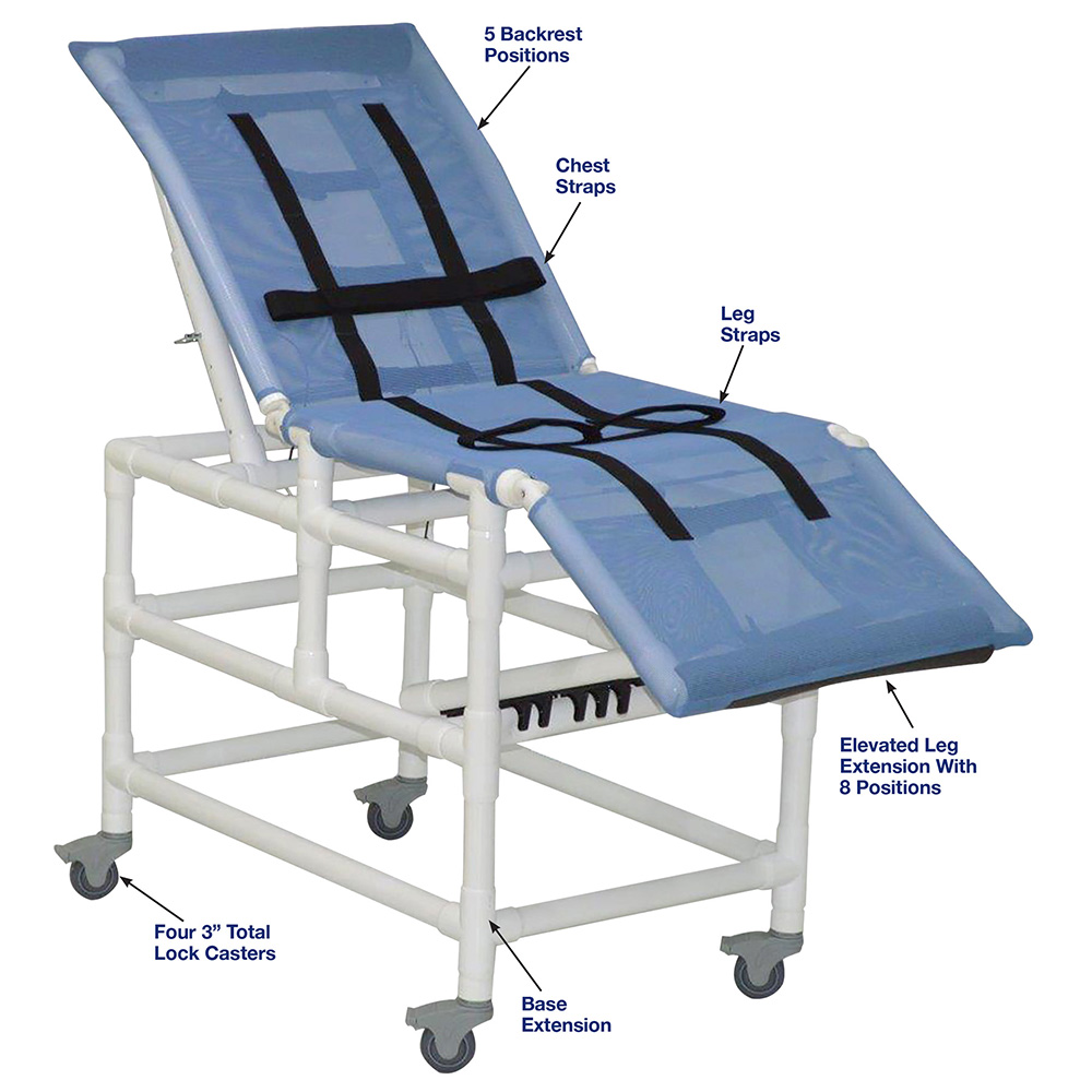 Healthcare Grade, Reinforced At All Stress Related Areas, Multi-Positioning Shower Chair, 5 Backrest Positions, Elevated Leg Extension With 8 Positions, Chest and Leg Straps Can Be Adjusted And Repositioned for Comfort And Security, Small Bath Chair Fits In Standard Size Bath Tubs.