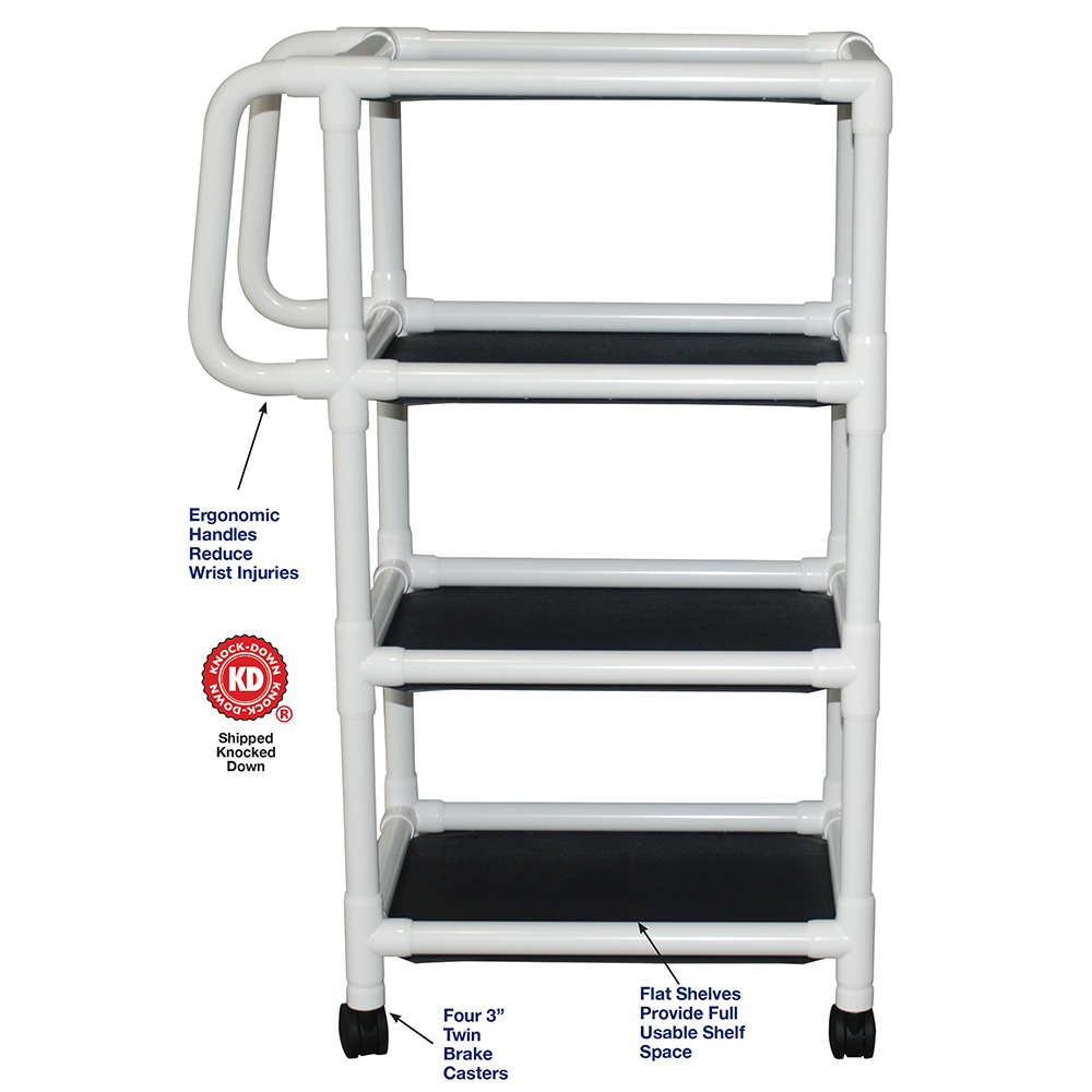 Healthcare Grade, Healthcare Grade, All Casters Are Reinforced, Flat Shelves Provide Full Usable Shelf Space, Ergonomic Handles Help Reduce Wrist Injuries.