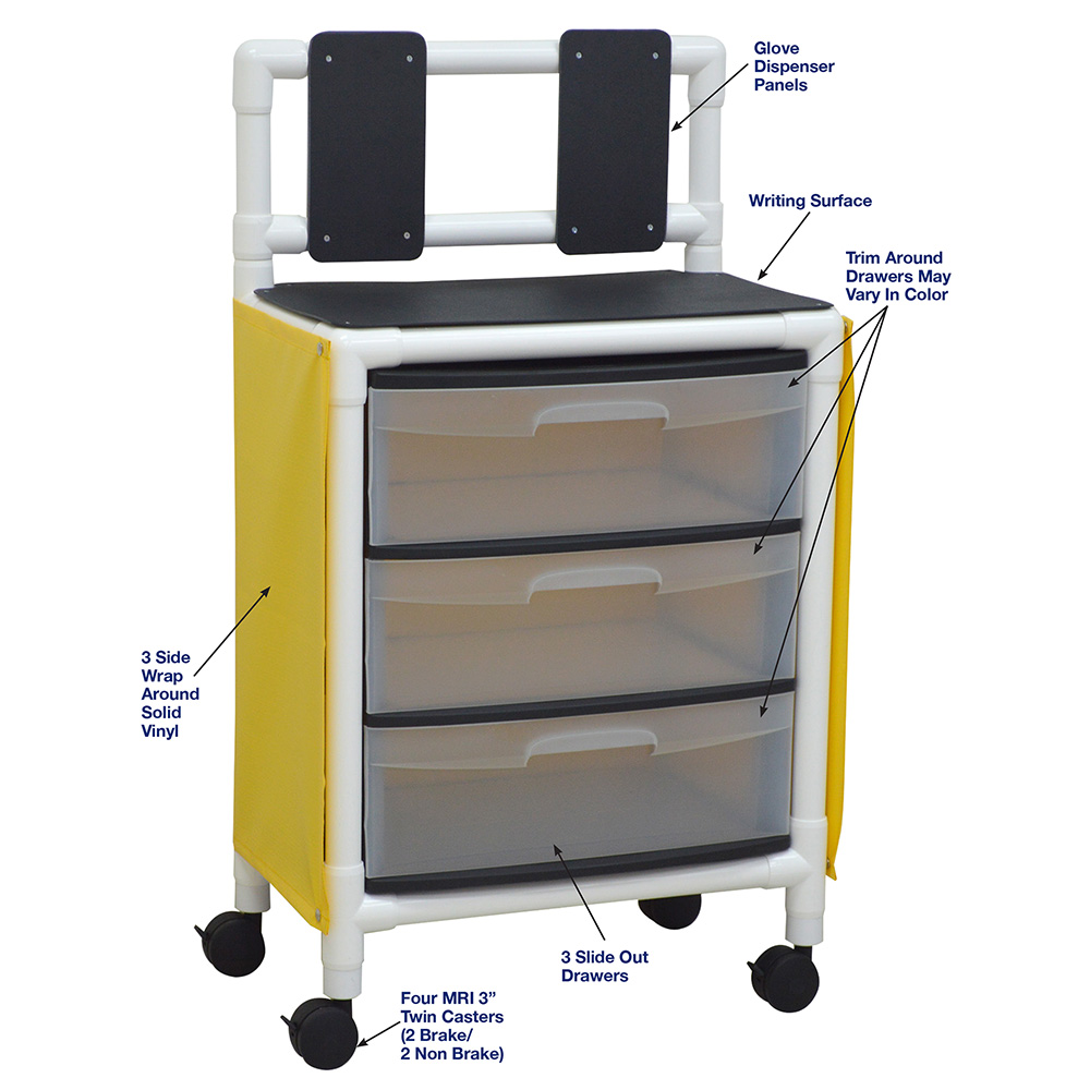 Healthcare Grade, All Casters Are Reinforced, Distribution Cart For Every Need, Reinforced At All Stress Related Areas, Universal Cart With 3 Slide Out Drawers (Trim Around Drawers May Vary In Color).