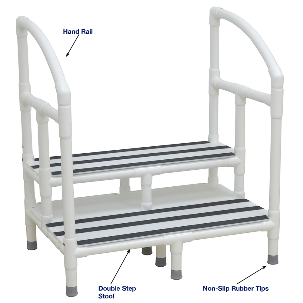 Healthcare Grade, Reinforced At All Stress Related Areas, MRI Double Step Stool With Handrails.