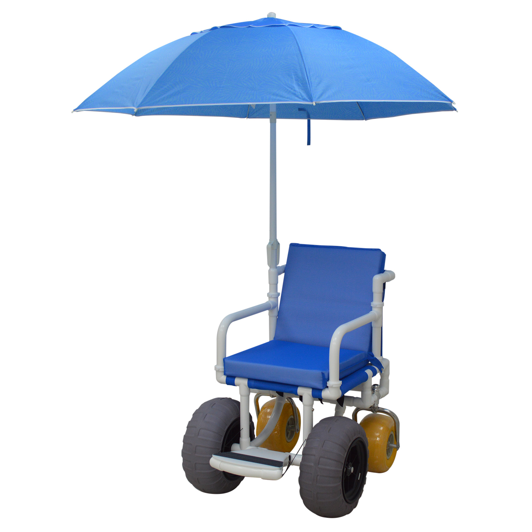 Healthcare Grade, Reinforced At All Stress Related Areas, Heavy Duty Wheels Non-Corrosive Plastic Bearings, 2 Swivel And 2 Rigid Wheels, Padded Cushion Seat, User-Friendly Folding Footrest.