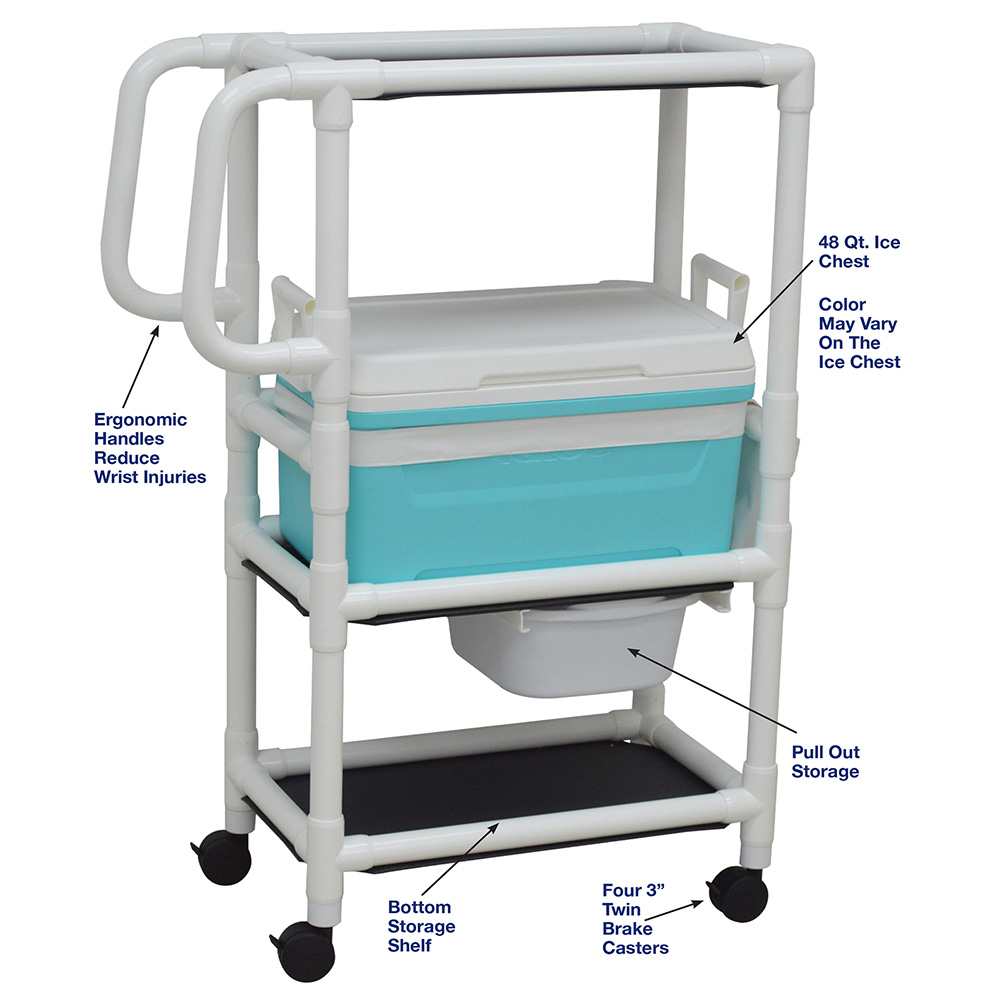 Healthcare Grade, Reinforced At All Stress Related Areas, 48 Quart Ice Chest, Ice Scoop, Pull Out Storage, Storage Shelf.
