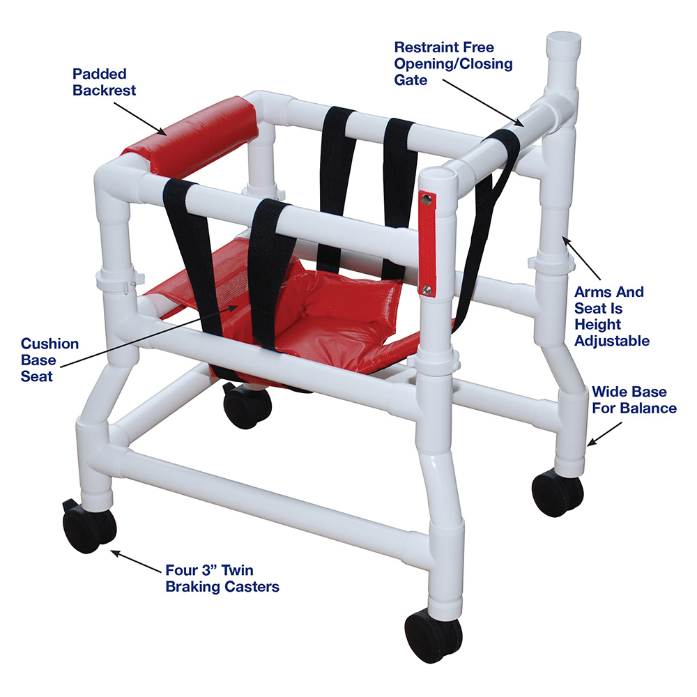 Healthcare Grade, Reinforced At All Stress Related Areas, Rust-Proof Frame, Adjustable (Seat And Arms), Pediatric Walker.