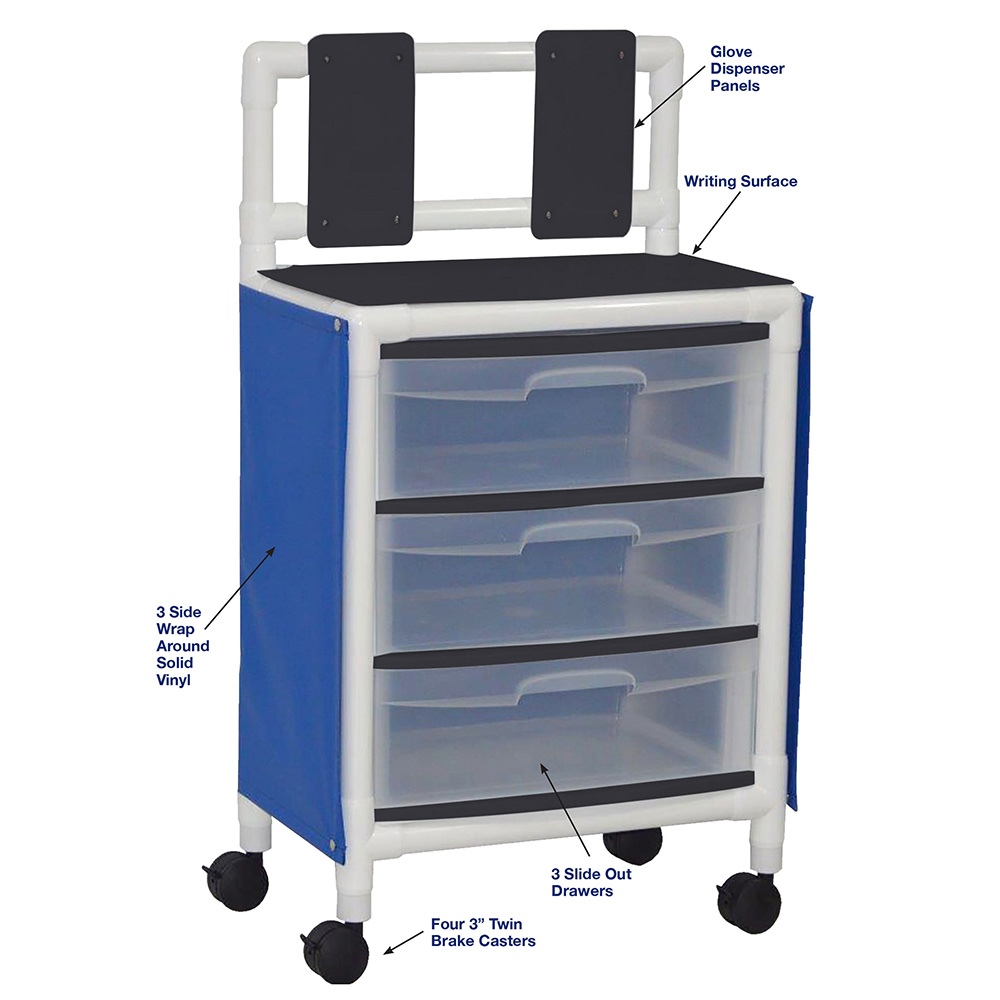 Healthcare Grade, All Casters Are Reinforced, Distribution Cart For Every Need, Reinforced At All Stress Related Areas, Universal Cart With 3 Slide Out Drawers (Trim Around Drawers May Vary In Color).