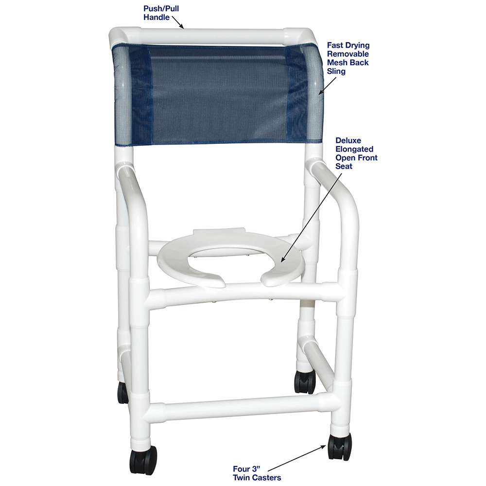 Healthcare Grade, Deluxe Elongated Open Front Seat Enhances Resident Comfort, Push/Pull Handle And Fast Drying Removable Mesh Back/Sling, Square Pail, Reinforced At All Stress Related Areas.