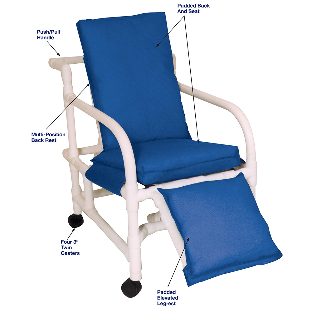 Healthcare Grade, Reinforced At All Stress Related Areas, Elevated Padded Legrest Reduces Pressure To Protect Against Pressure Ulcers, Multi-Position Leg And Back Rest Will Allow Maximum Comfort.