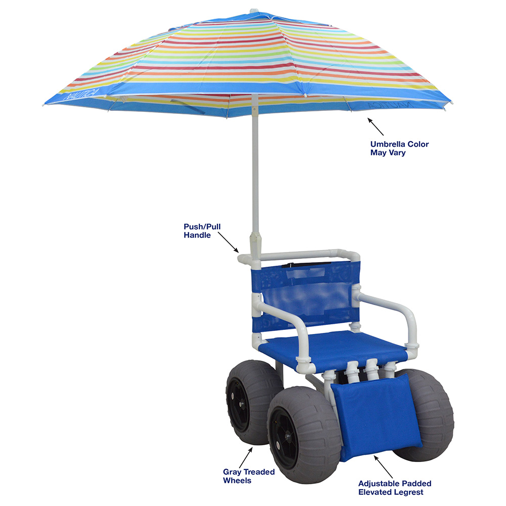 Healthcare Grade, Reinforced At All Stress Related Areas, Echo Recreational Chair 20” Internal Width, Sling Seat, Elevating Leg Rest, Gray Treaded Wheels with a Free Air Hand Pump, Umbrella, 250 Lbs Weight Capacity.