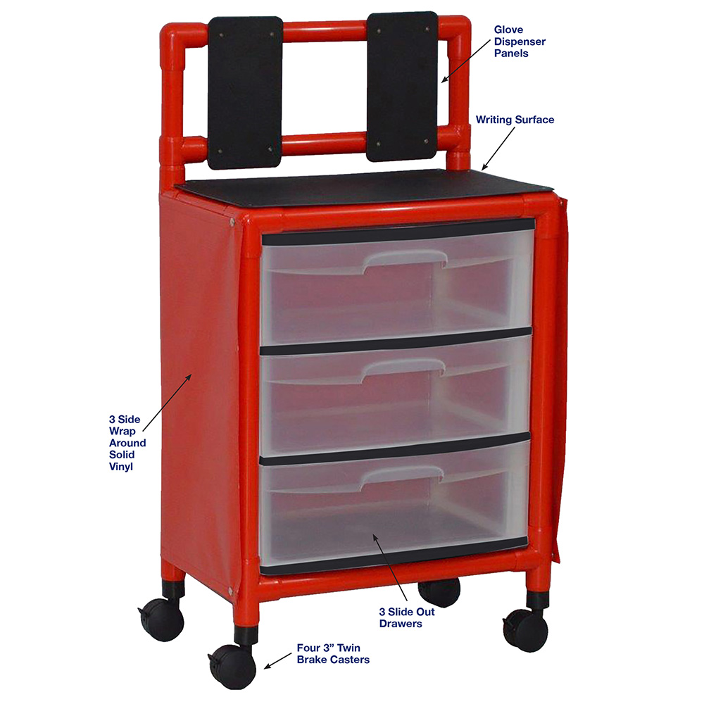 Healthcare Grade, All Casters Are Reinforced, Distribution Cart For Every Need, Reinforced At All Stress Related Areas, Universal Cart With 3 Slide Out Drawers (Trim Around Drawers May Vary In Color).