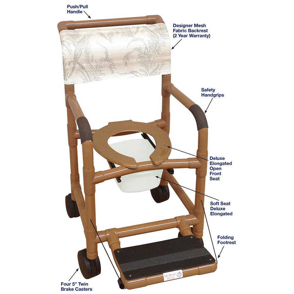 Healthcare Grade, Deluxe Elongated Open Front Soft Seat Enhances Resident Comfort, Safety Handgrips, Push/Pull Handle And Fast Drying Removable Mesh Back/Sling, Square Commode Pail, Folding Footrest And Reinforced At All Stress Related Areas.