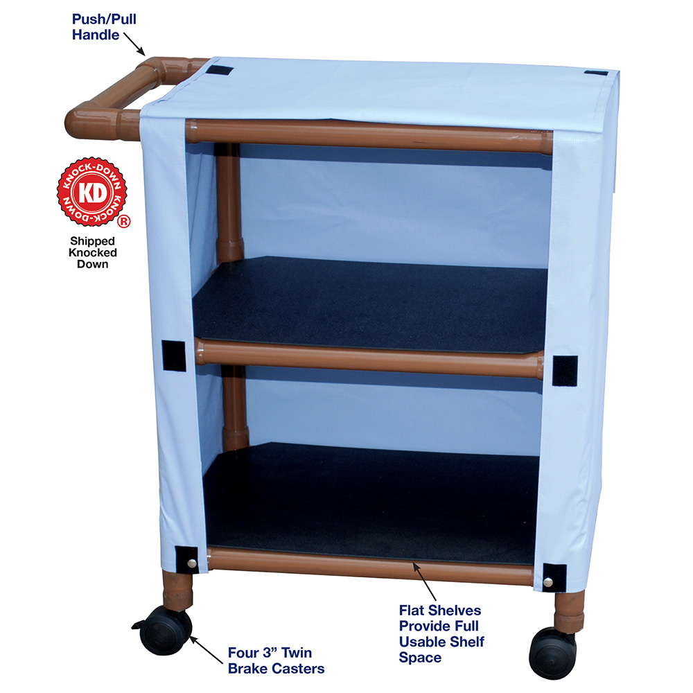 Healthcare Grade, All Casters Are Reinforced, Flat Shelves Provide Full Usable Shelf Space, Velcro Closure.
