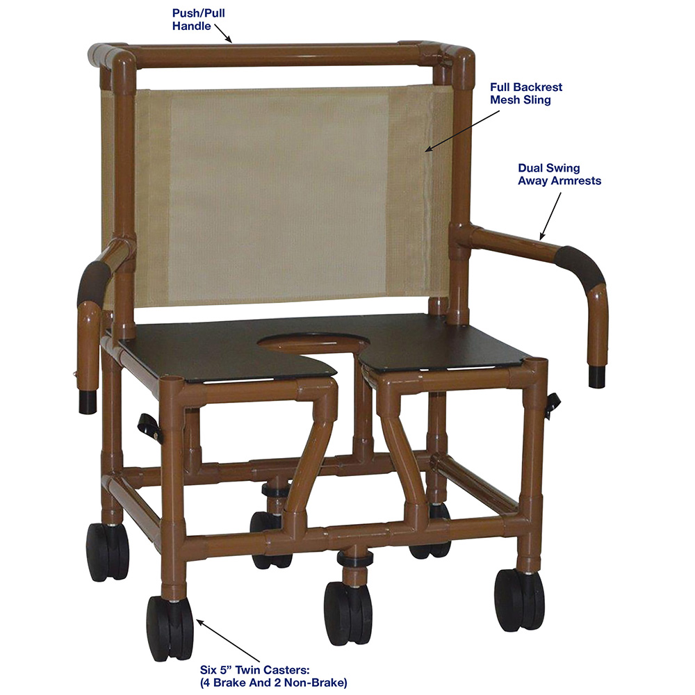 Healthcare Grade, Deluxe Elongated Open Front Seat Enhances Resident Comfort, Safety Handgrips, Push/Pull Handle And Fast Drying Mesh Back/Sling, Reinforced At All Stress Related Areas.